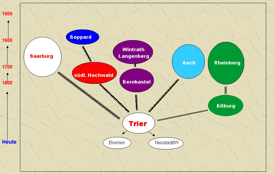 Die Linie meiner Frau kommt aus Bitburg, Koblenz und dem Rheinland.